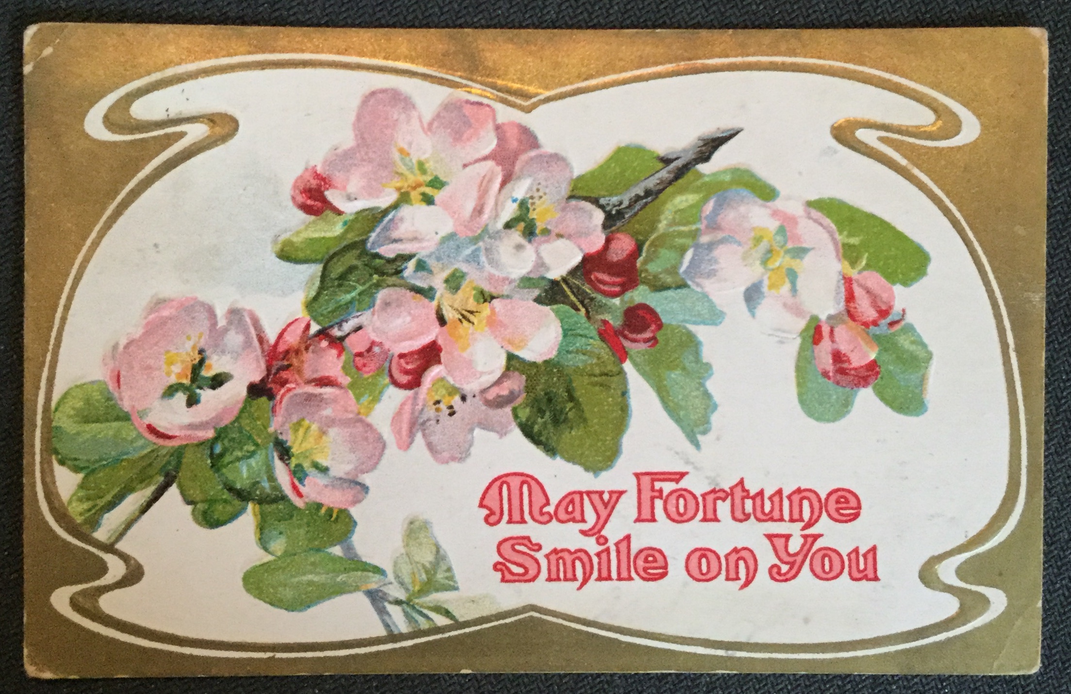 Postcard Used Embossed Flowers “May fortune smile...” MO LB