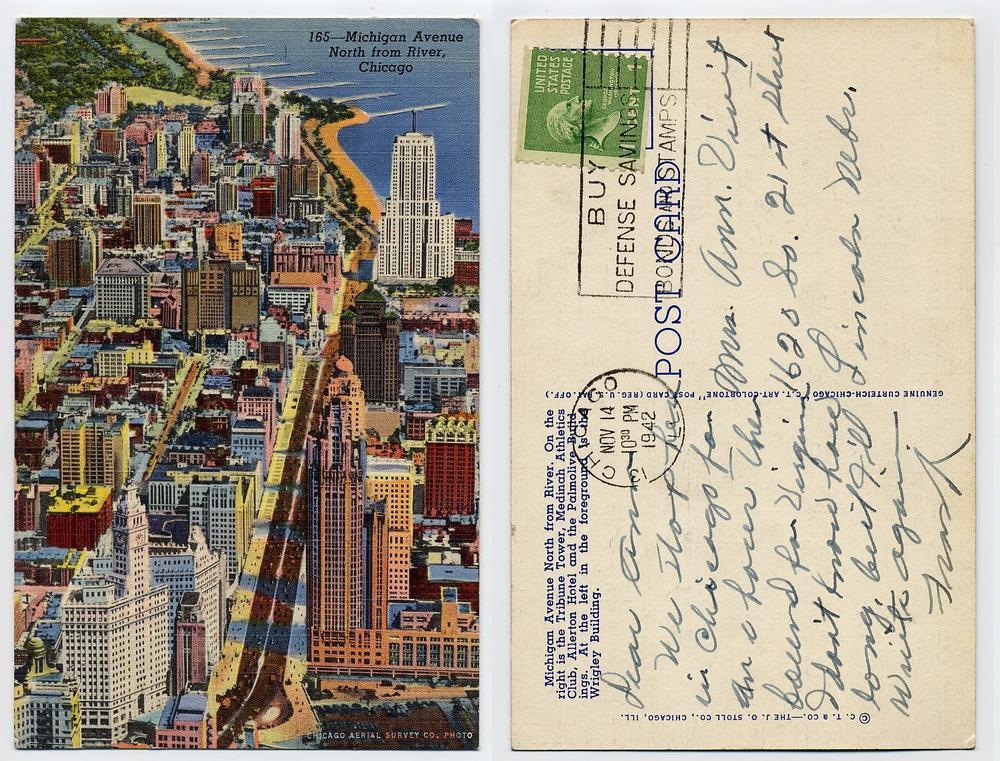 Postcard used, Michigan Avenue, Chicago