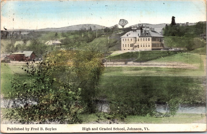 Postcard Vermont Johnson High and Graded School Pub. Fred B. Boyles ~1910 V177