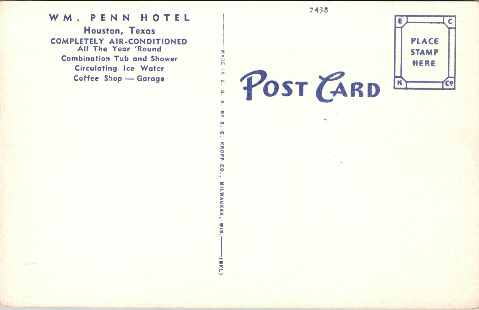Postcard William Penn Hotel in Houston, Texas
