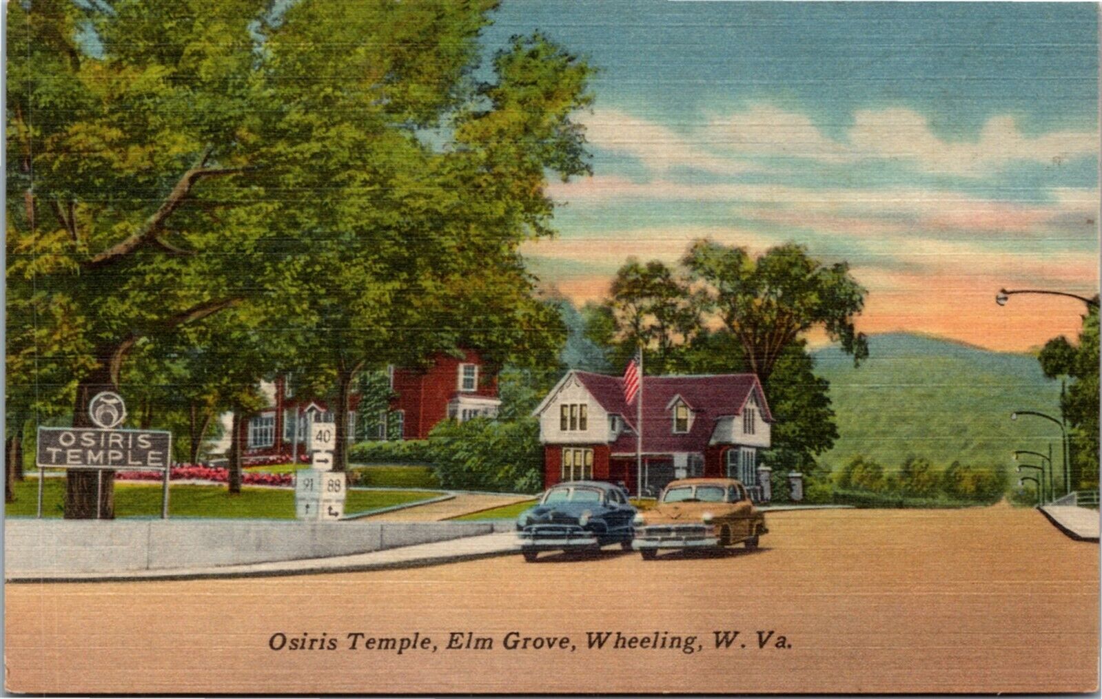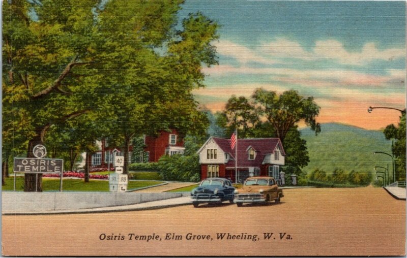 Postcard WV Wheeling Osiris Shriners Temple Elm Grove Classic Cars 1940s H32 Powered by SixBit's eCommerce Solution