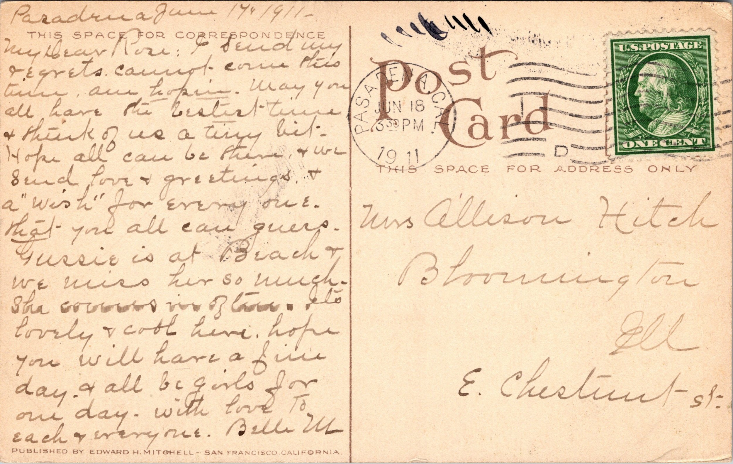 Postcarsd CA Pasadena Rustic Bridge Bush Gardens