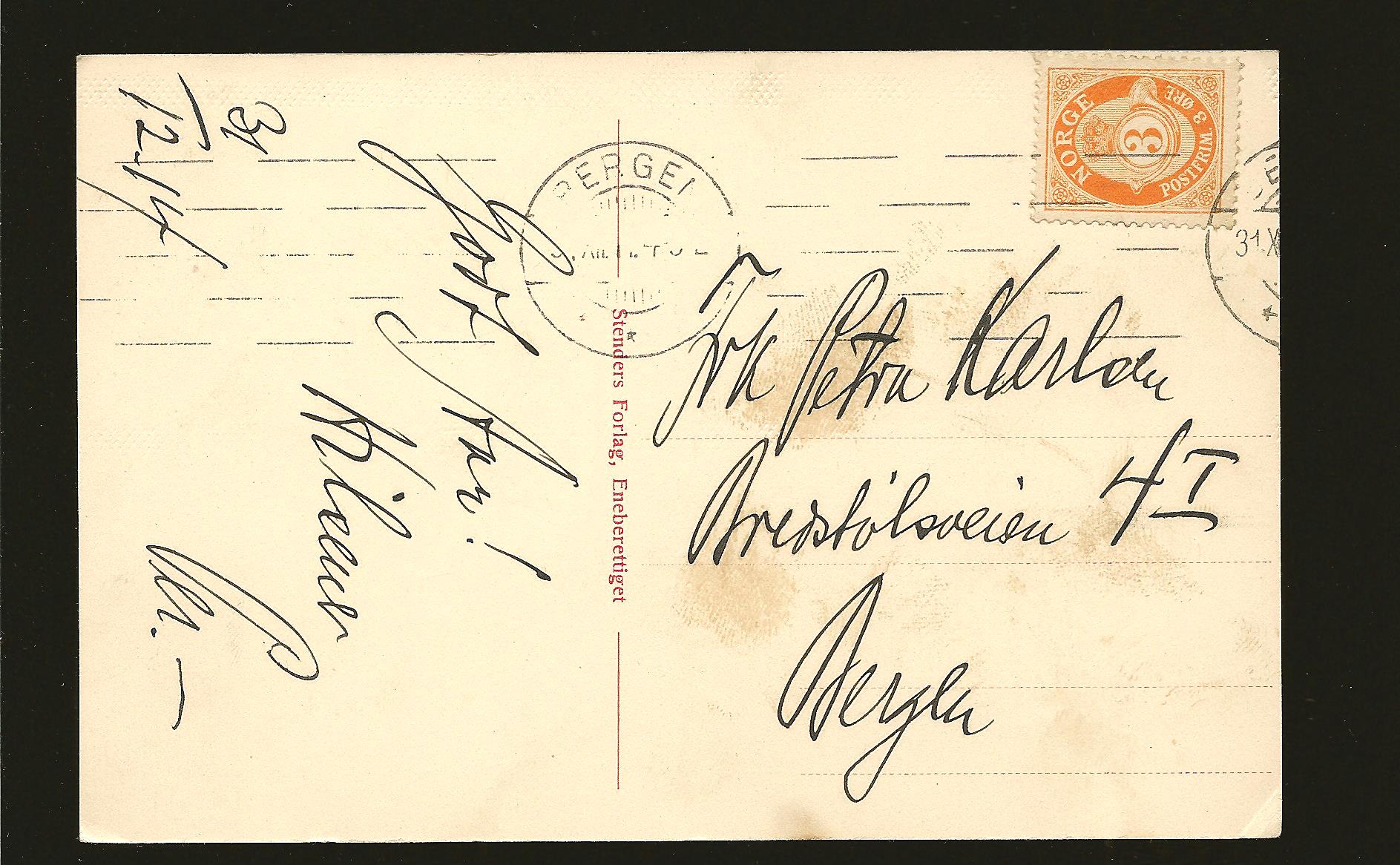 Postmark 1914 Bergen Norway New Year 1915 Postcard
