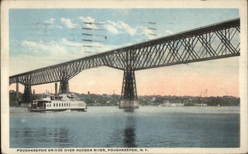 Poughkeepsie NY Ferry Boat & Bridge c1920 Postcard