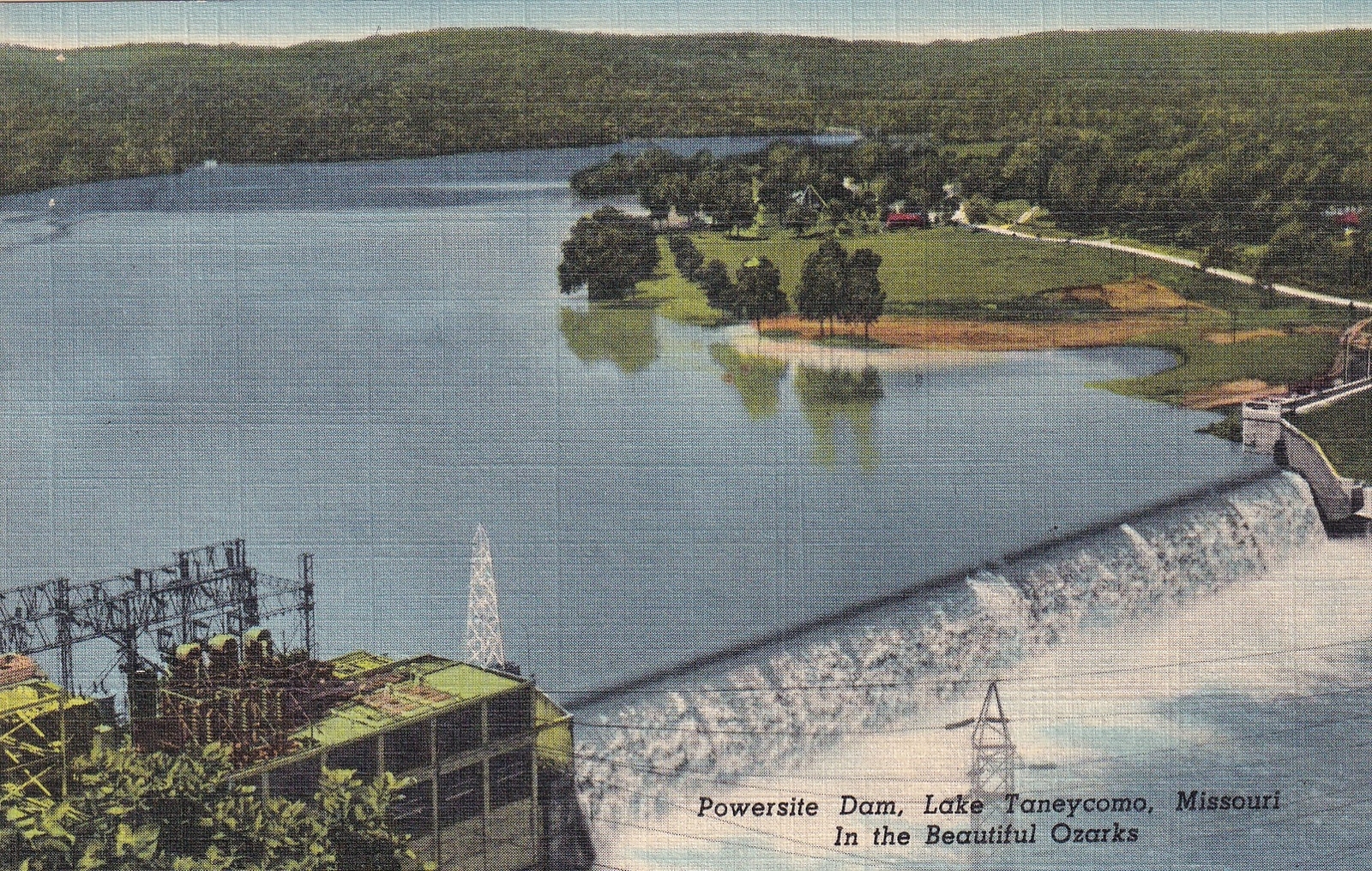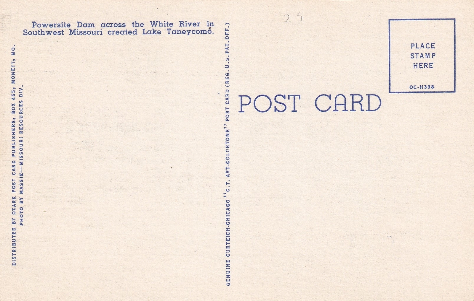 Powersite Dam Lake Taneycomo Missouri MO Ozarks Postcard A07