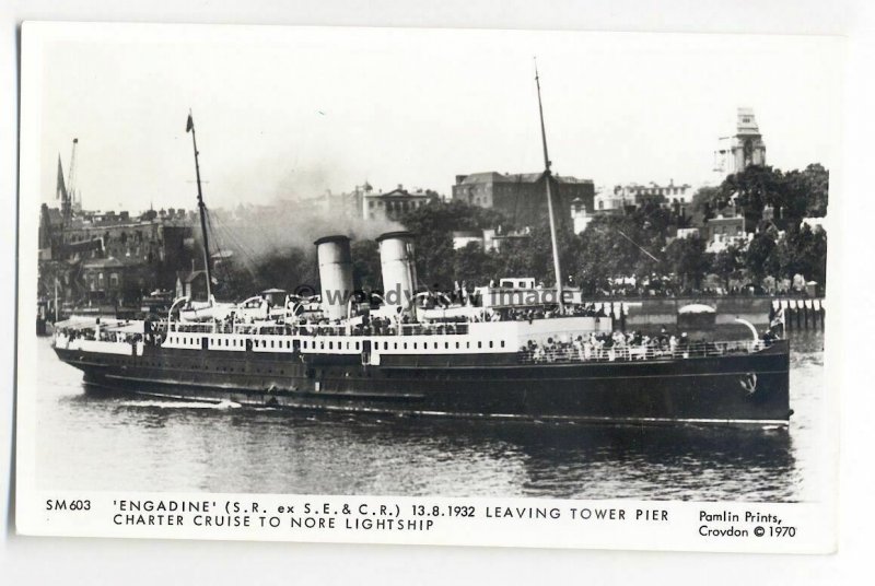 pp1061 - Ferry - Engadine leaving Tower Pier in 1932 - Pamlin postcard