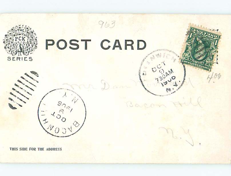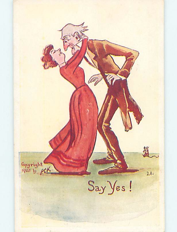 Pre-1907 comic signed WOMAN PULLS DOWN ON MAN'S NECK HL2231