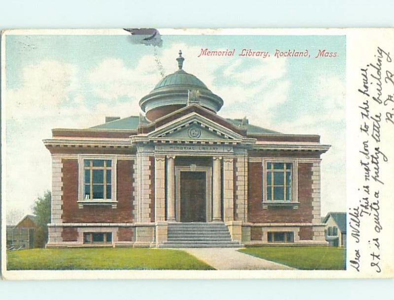 Pre-1907 MEMORIAL LIBRARY Rockland Massachusetts MA A3196