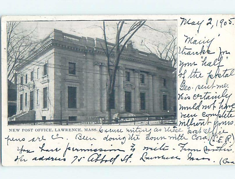 Pre-1907 POST OFFICE Lawrence Massachusetts MA A3576