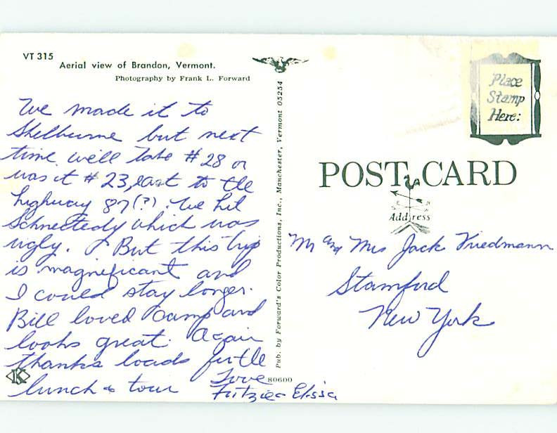 Pre-1980 AERIAL VIEW Brandon Vermont VT AD0021