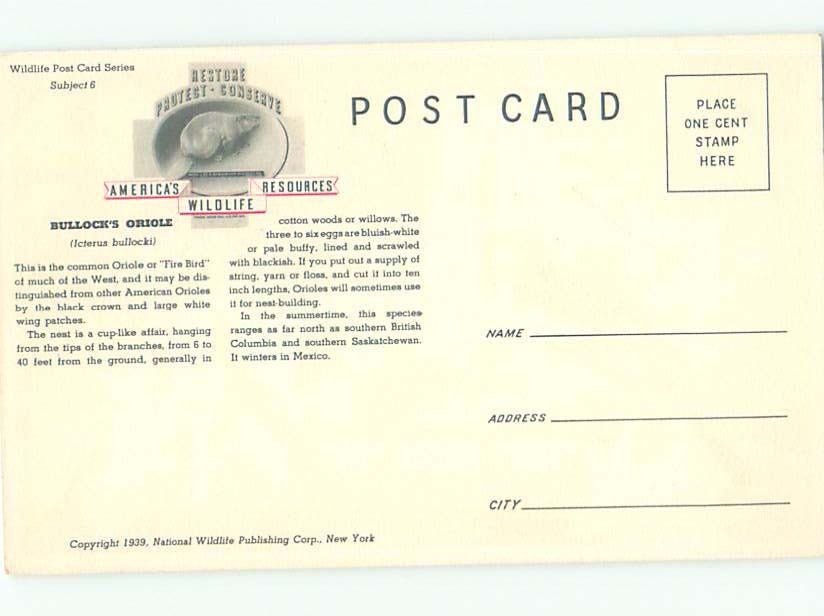Pre-1980 BULLOCKS ORIOLE BIRD AC5972