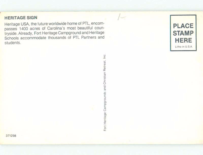 Pre-1980 ENTRANCE SIGN Heritage Usa - Fort Mill Near Rock Hill SC E5616