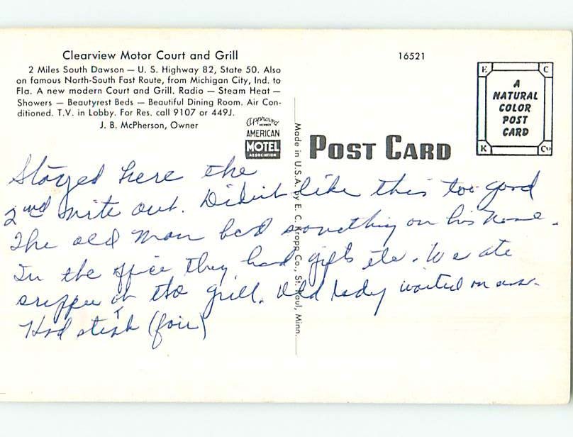 Pre-1980 MOTEL SCENE Dawson Georgia GA B6830