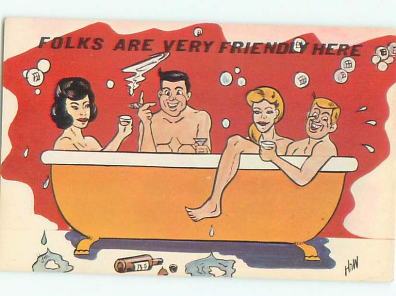 Pre-1980 Risque Comic MANY PEOPLE IN BATHTUB AB7065@