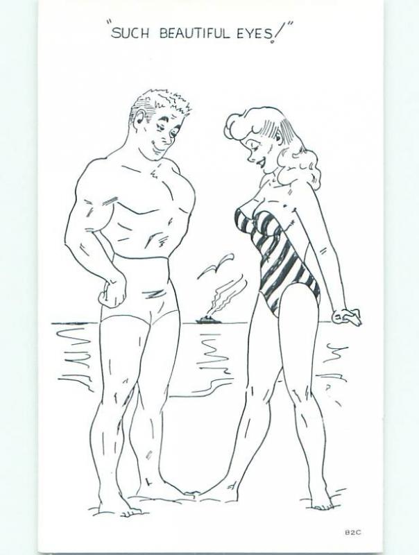 Pre-1980 Risque Comic SEXY BEACH GIRL LOOKING DOWNWARD AB7071