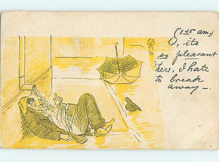 Pre-Linen alcoholism comic DRUNK MAN LYING UNDER THE DRAIN SPOUT HL2323