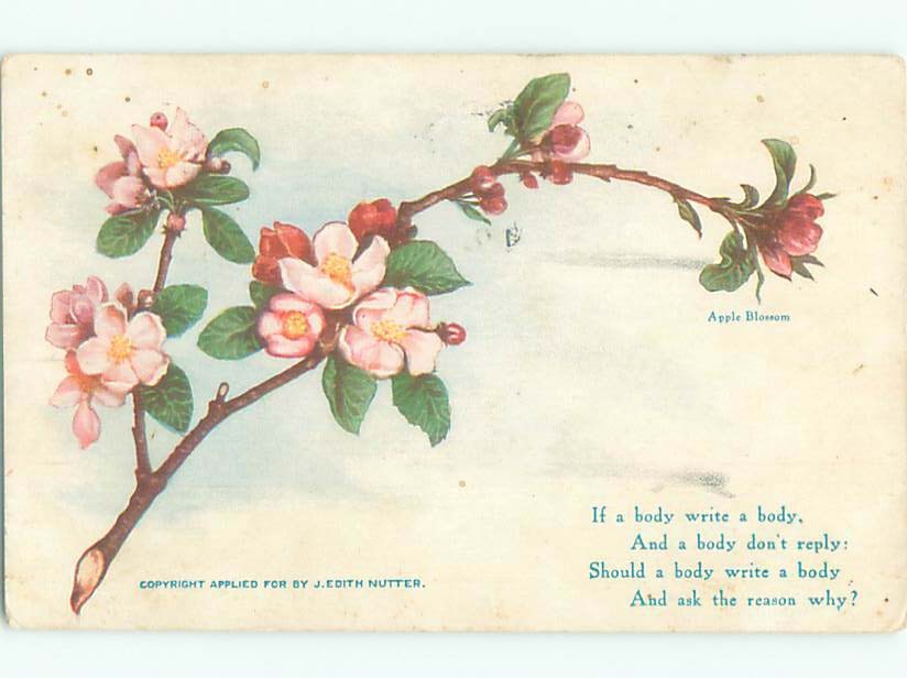 Pre-Linen APPLE FLOWER BLOSSOMS ON POSTCARD AC4014