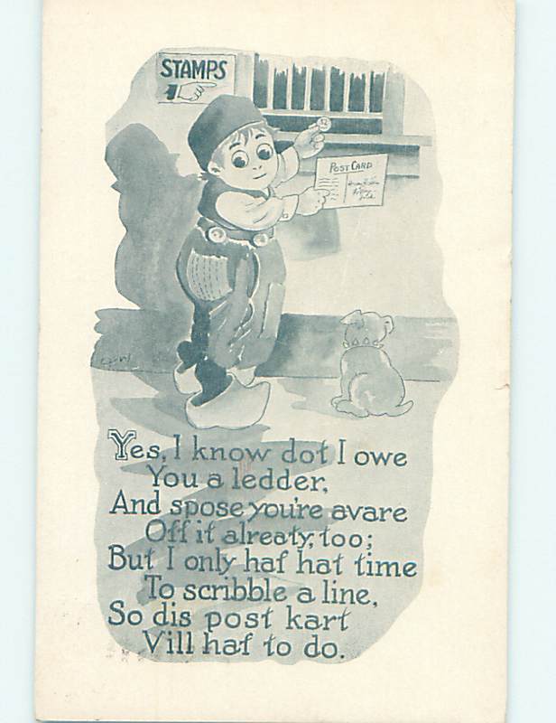 Pre-Linen comic BOY MAILING A POSTCARD AT THE USPS MAIL COUNTER HL6728