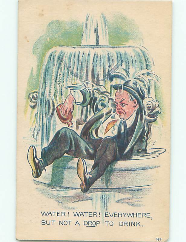 Pre-Linen Comic DRUNK MAN FALLS INTO THE FOUNTAIN AB8807