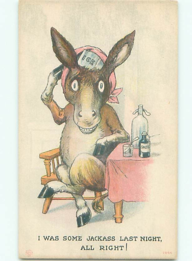 Pre-Linen Comic HUMANIZED DONKEY WITH HANGOVER FROM LAST NIGHT AB9594