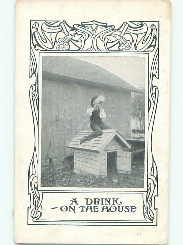 Pre-Linen Comic MAN HAVING A DRINK ON THE DOGHOUSE AB8717