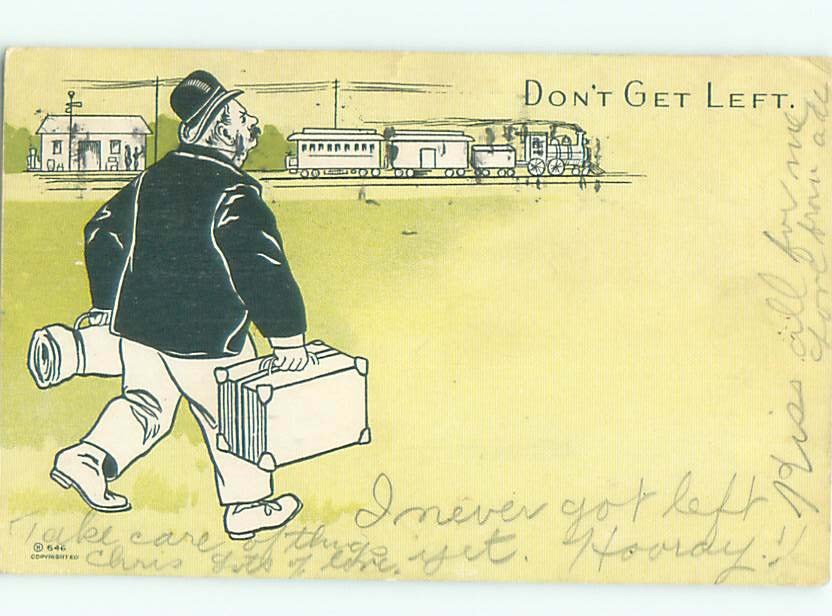 Pre-Linen Comic MAN WITH HIS SUITCASE WALKS TO TRAIN AB9241