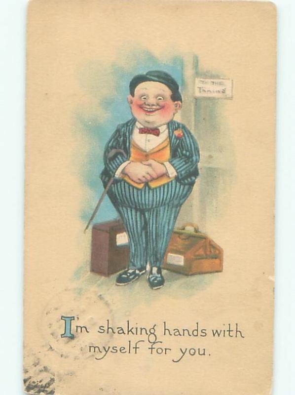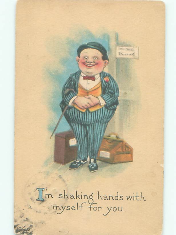 Pre-Linen Comic MAN WITH TWO TRAVEL SUITCASES AB8764