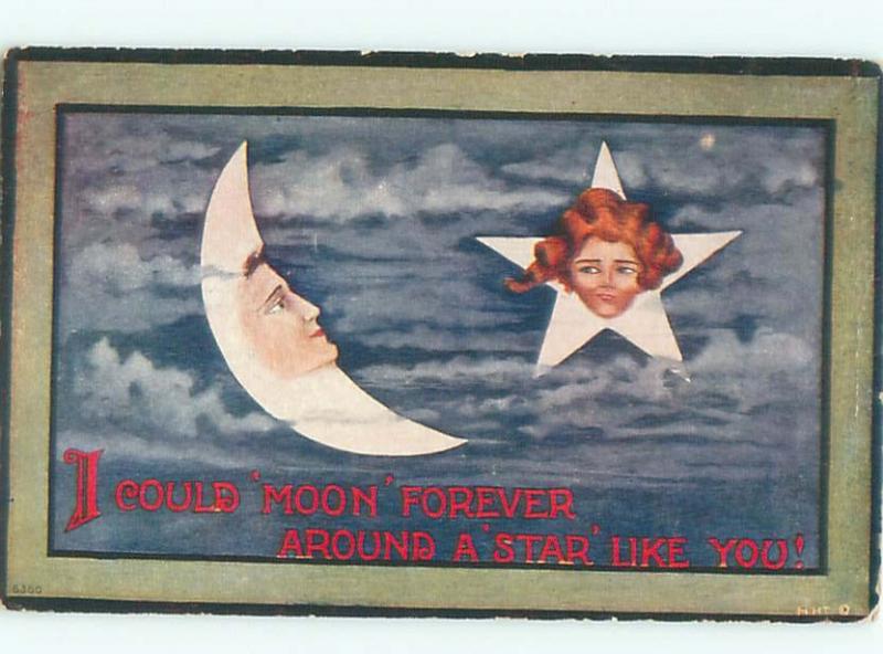 Pre-Linen Comic ROMANTIC COUPLE ON MOON AND STAR AB8376