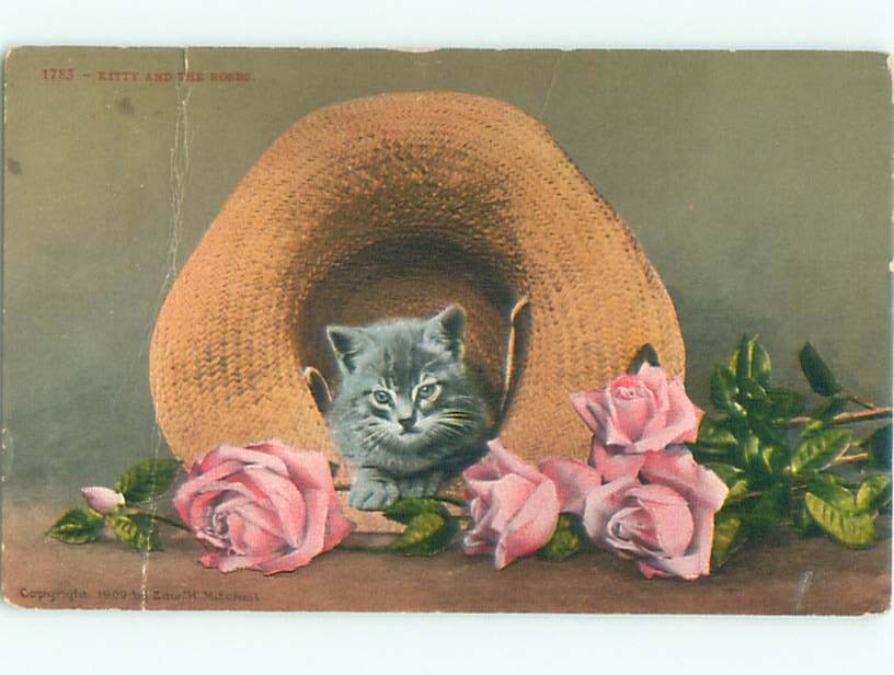 Pre-Linen CUTE KITTEN CAT IN STRAW HAT AC5494
