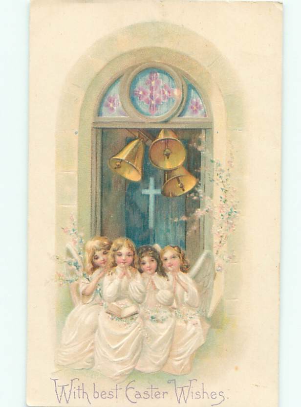 Pre-Linen Easter BEAUTIFUL ANGELS UNDER THE BELLS AB4012
