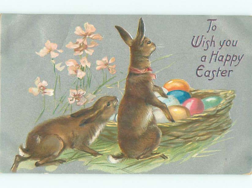 Pre-Linen Easter CUTE BUNNY RABBIT WITH EGG BASKET AB3563