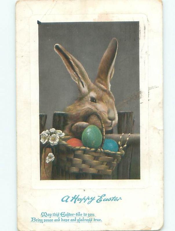 Pre-Linen Easter CUTE BUNNY RABBIT WITH EGG BASKET AB3707