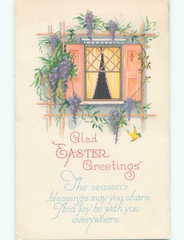 Pre-Linen easter CUTE LITTLE BIRD FLIES BY THE WINDOW k2662