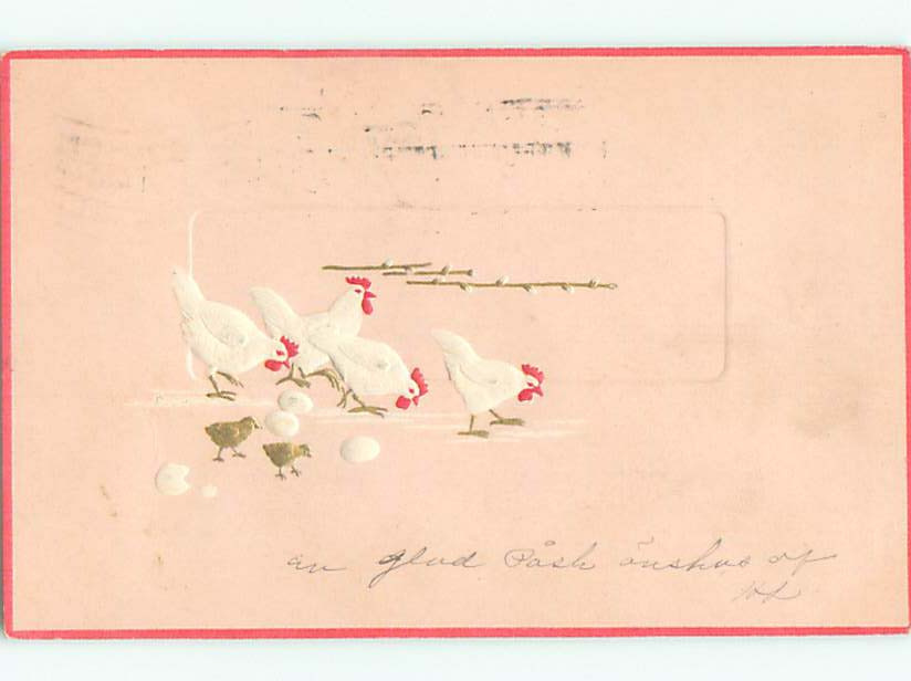 Pre-Linen easter EMBOSSED WHITE CHICKENS WITH GOLDEN CHICKS k3078