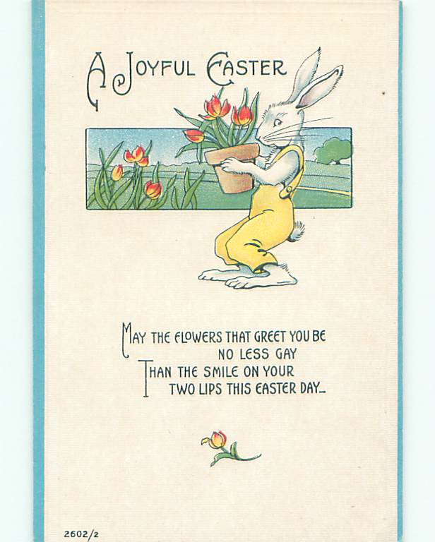 Pre-Linen easter HUMANIZED BUNNY RABBIT CARRIES FLOWERPOT k2625
