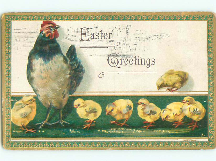 Pre-Linen easter LOTS OF CHICKS WITH CHICKEN k3077