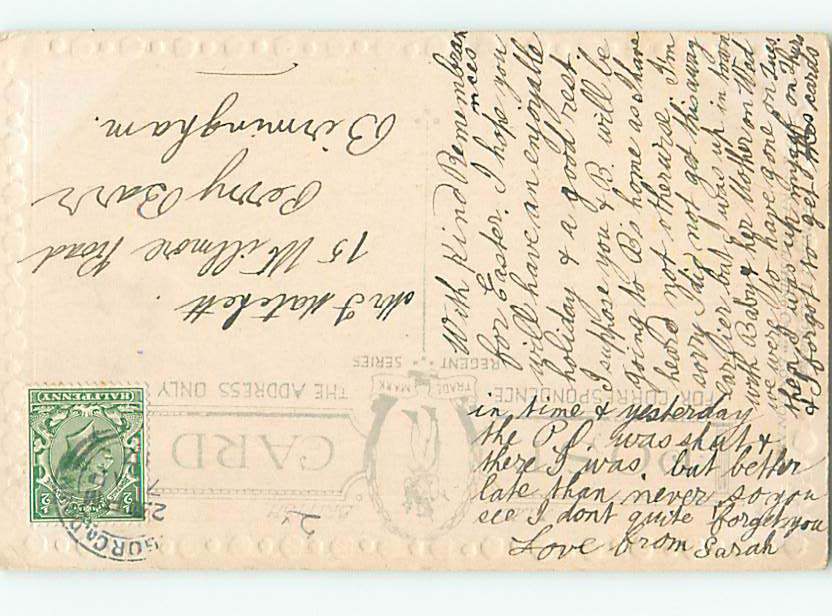 Pre-Linen easter signed H. MORRIS - EGG & FORGET-ME-NOTS & WHITE FLOWERS hr2517