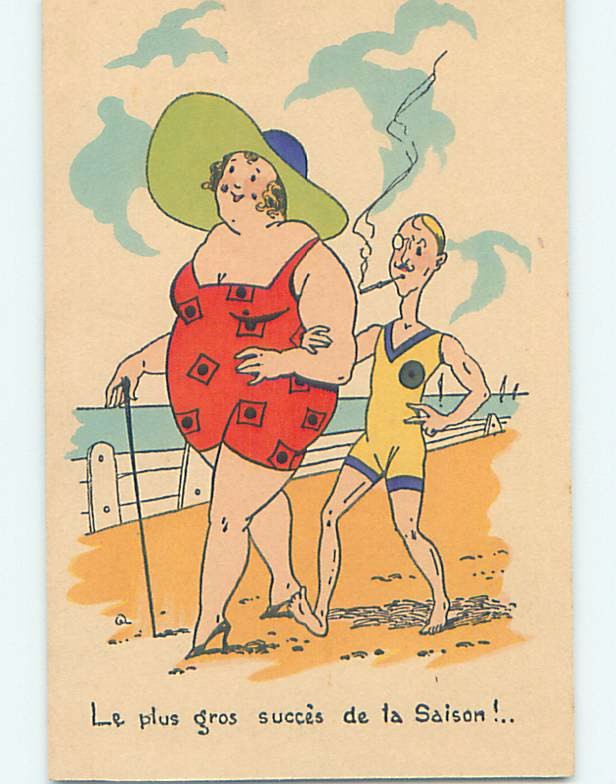 Pre-Linen foreign risque BIG WOMAN BATHING SUIT WITH SMALL HUSBAND HL8639