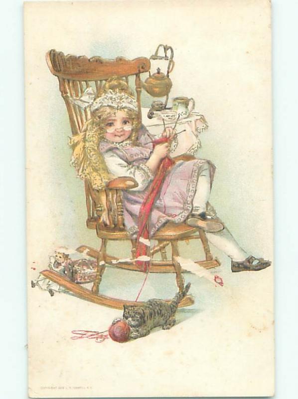 Pre-Linen KITTEN CAT PLAYS WITH KNITTING YARN AC1860