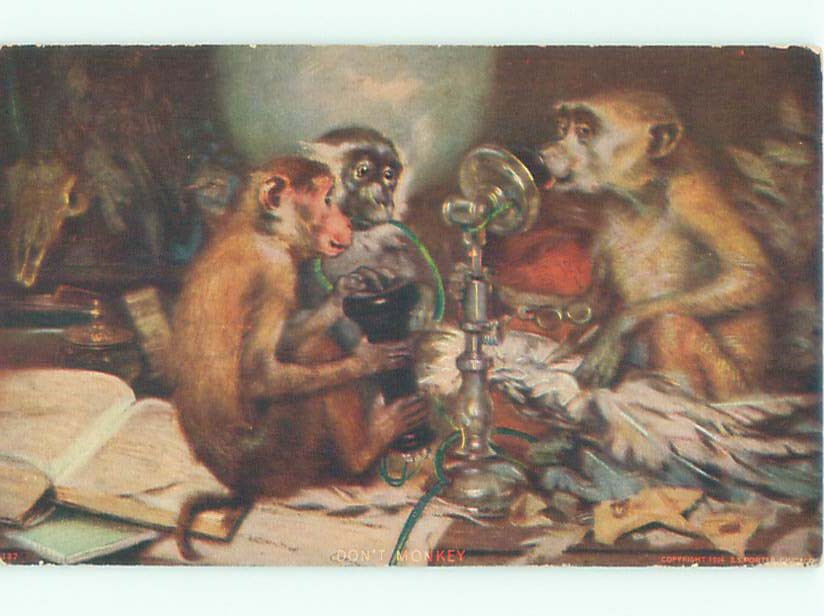 Pre-Linen MONKEYS USING ANTIQUE TELEPHONE AC5819