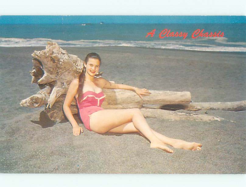 Pre-Linen Risque SEXY GIRL POSING IN PINK BATHING SUIT AB7177
