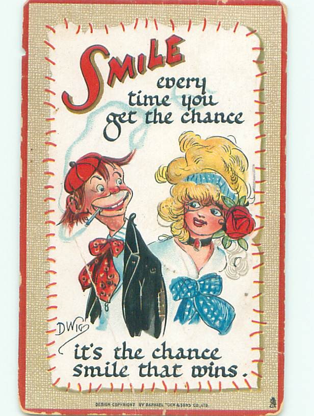 Pre-Linen Risque signed DWIG - PRETTY GIRL WITH MAN SMOKING CIGARETTE AB7687