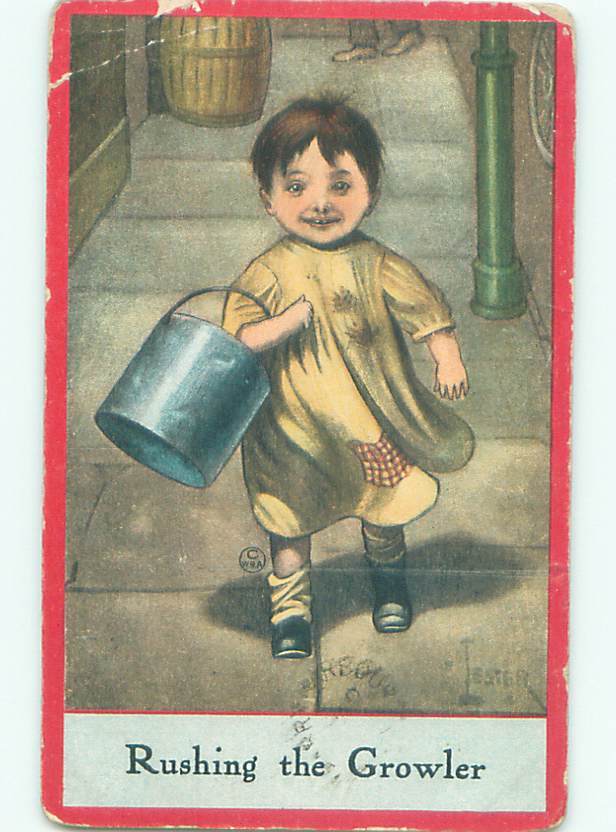 Pre-Linen signed BOY RUNNING WITH METAL PAIL AC2008