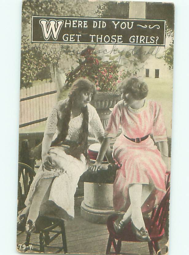Pre-Linen Slight Risque Interest PRETTY GIRLS SITTING ON THE TABLE AB7573