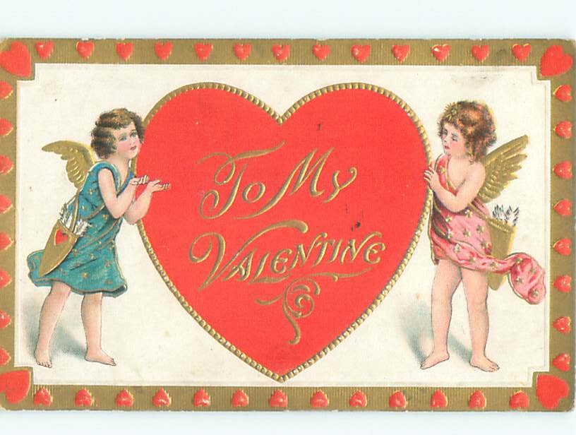 Pre-Linen Valentine CUPIDS WITH LARGE HEART AB3164