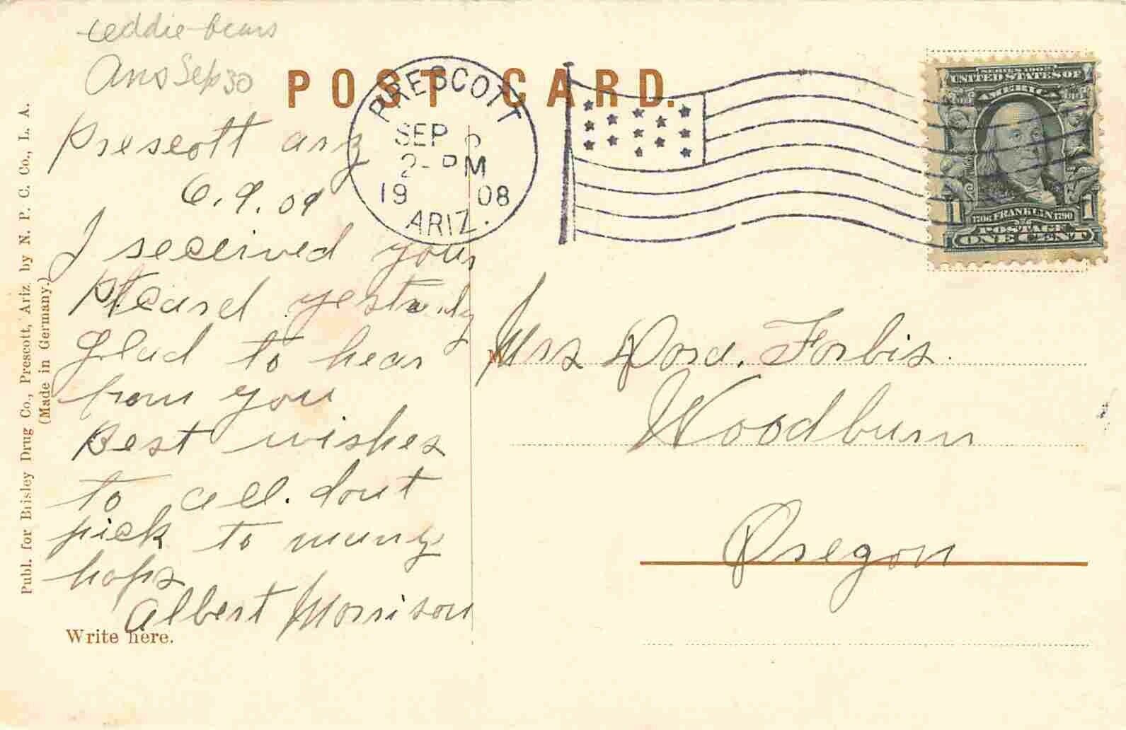 Prescott Arizona Panorama The Mountain City 1908 postcard