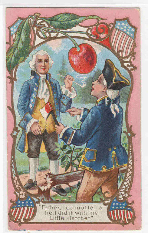 Description: President George Washington Cherry Tree Patriotic 1909 postcard Type: divided back Condition: very good+, light corner wear Any hatched effect on pic is scanner effect, not on postcard. Postal use: used, posted 1909 MORE POSTCARDS IN MY STORE - THE POSTCARD DEPOT Track Page Views WithAuctiva's FREE Counter