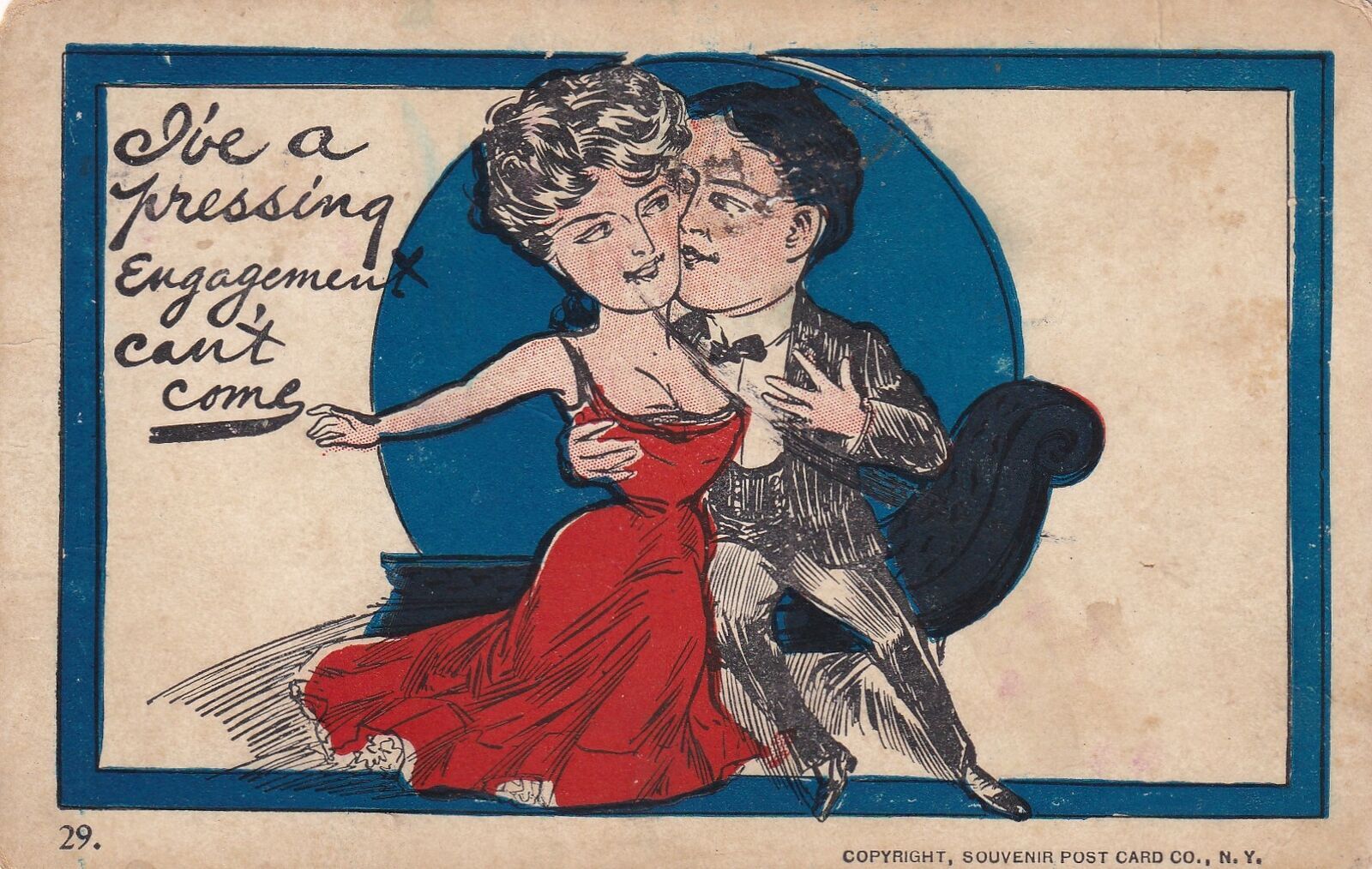 Pressing engagement postcard 1908 couple dancing pittsburg kansas