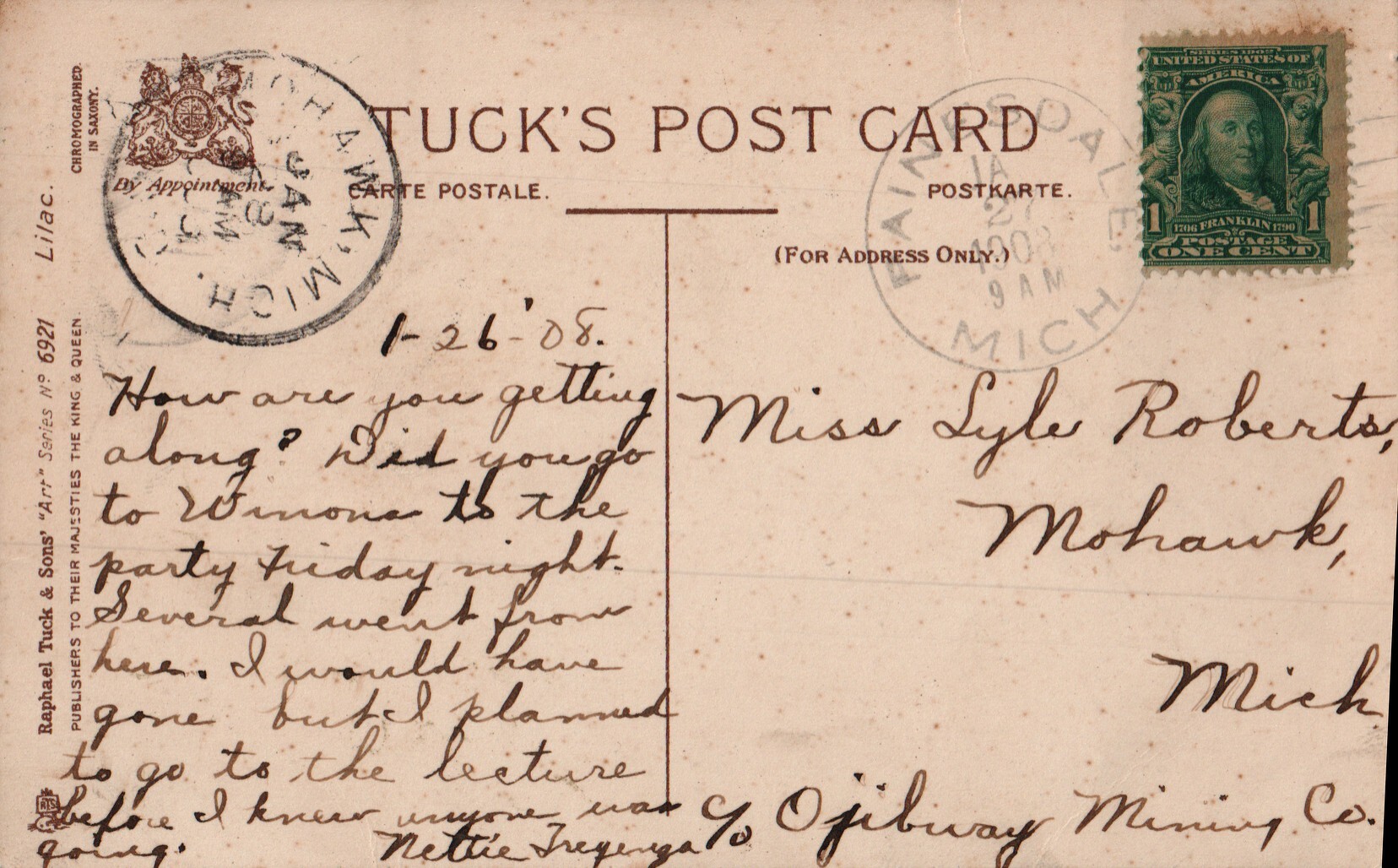 Received: Jan 28, 1908 Mohawk, Mich.