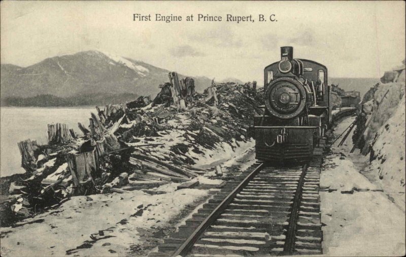 Prince Rupert British Columbia BC First Engine Train c1910 Postcard